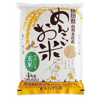 ■商品名:めんこいお米(ササニシキ・玄米)■内容量:4kg■原材料:玄米■産地:秋田県(由利本荘)■栽培区分:特別栽培米(栽培期間中化学合成農薬・化学肥料不使用)■秋田県由利本荘の"ミヱ子ばあちゃん“こと須田ミヱ子さん達が栽培する「ササニシキ」でお馴染みの『めんこいお米」一年を通じてお米が一番美味しいこの時期に、ぜひご賞味ください。