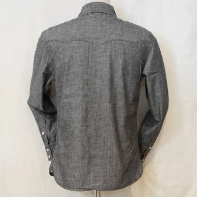 スタイルはトリプルヨークにドットボタンで留める形式のフリップ付きポケットがついたウエスタンスタイル。