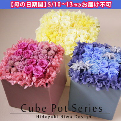花 ギフト 【HND】☆楽天1位☆フラワー アーティスト 丹羽英之デザインプリザーブドアレンジキューブポット(3色から選べます!)送料無料 プレゼント フラワー アレンジ アレンジメント バラ 陶器 御祝 記念日