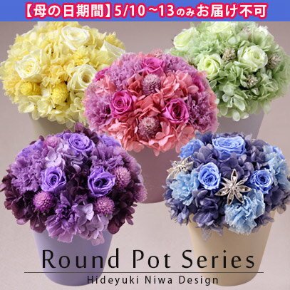 花 ギフト 【HND】☆楽天1位☆フラワー アーティスト 丹羽英之デザインプリザーブドアレンジラウンドポット(現在3色から選べます!)送料無料 プレゼント フラワー アレンジ アレンジメント バラ 陶器 御祝 記念日