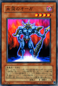 遊戯王5D's「アブソリュート・パワーフォース(ABPF)」収録 ■カード名:血涙のオーガ 【効果モンスター】ノーマル ■星4/闇属性/悪魔族/攻:0/守:0/ ■相手ターンに1度のバトルフェイズ中に2体目の直接攻撃が宣言された時、このカードを手札から特殊召喚する事ができる。