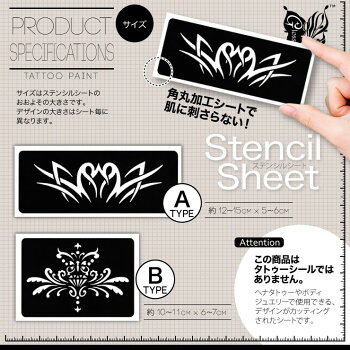 ◎ヘナタトゥーやボディジュエリーの強い味方!! ◎複雑なデザインもカンタンに描けちゃうデザインシート!! ◎角丸加工なので肌に刺さらず、適度な粘着力で隙間なく貼れるシールタイプ!! ●まるでアクセサリー!! その日の気分で自由に着せ替え!! ●本物の刺青はちょっと抵抗が…。