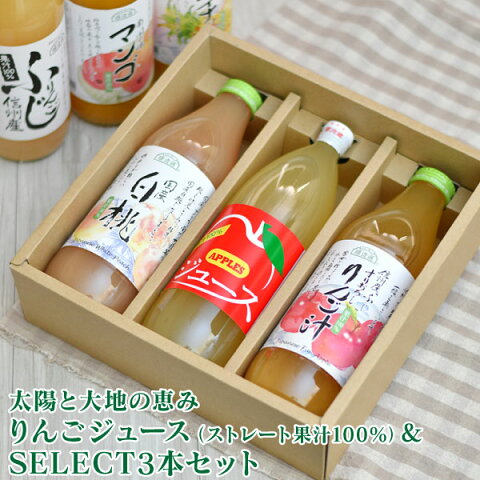 【内祝い お返し 等に】【送料無料】【名入れ 1個より】飛騨高山の恵み りんごジュース(ストレート果汁100%)&SELECT3本セット<※【内祝い・出産内祝い・ギフトセット・結婚内祝い・ジュース 100% 敬老の日】>【オリジナルギフト】