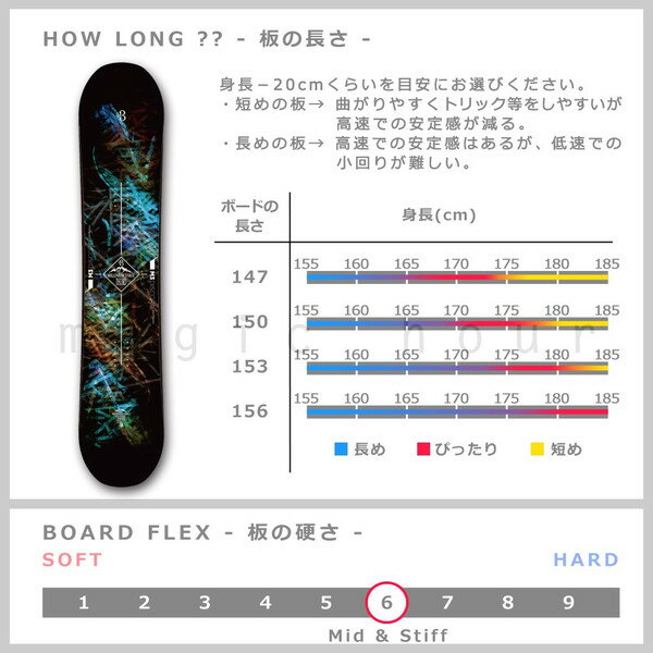 ・形状: ハイブリッドローキャンバー/ Wロッカー, ツインチップ, SW構造 サイズ選びについて (男性の場合) 身長?20cm前後がおすすめ! 顎から鼻辺りまでの長さが一般的に乗りやすい長さになっています。