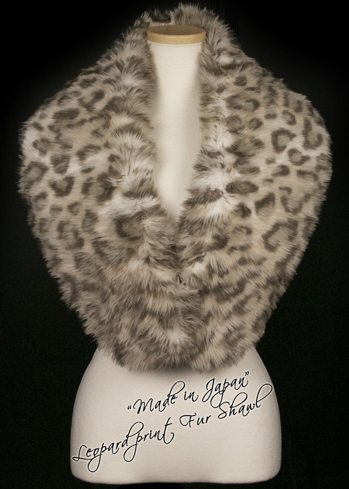 ▼画像クリックで拡大▼ 華やかで上品な、ヒョウ柄のフェイクファーショールです。