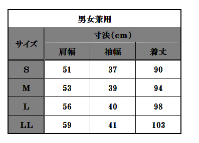 冬用・長袖上衣(ポリエステル100%)男女兼用サイズ S/M/L/LL
