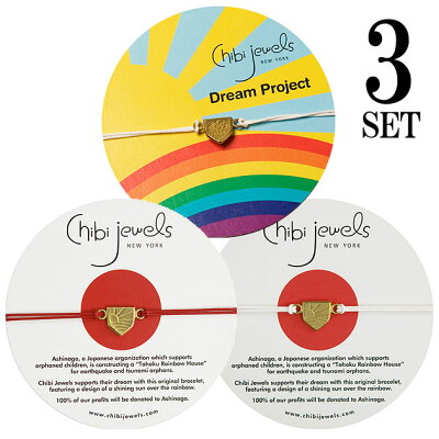 ニューヨーク発のブランド「chibi jewels」から、東北の子供たちへ願いを込めたブレスレットが届きました! 日本の国旗をイメージした台紙につけられた、紐コードブレスレット。