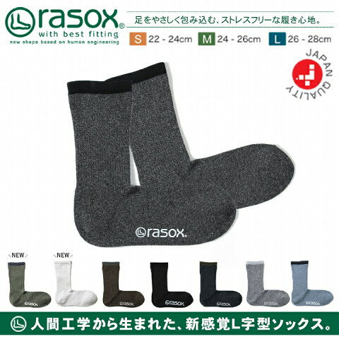 【メール便無料】rasox ラソックス 日本製 ドラロン ミックス L字型 クルーソックス メンズ レディース ユニセックス カジュアル ギフト
