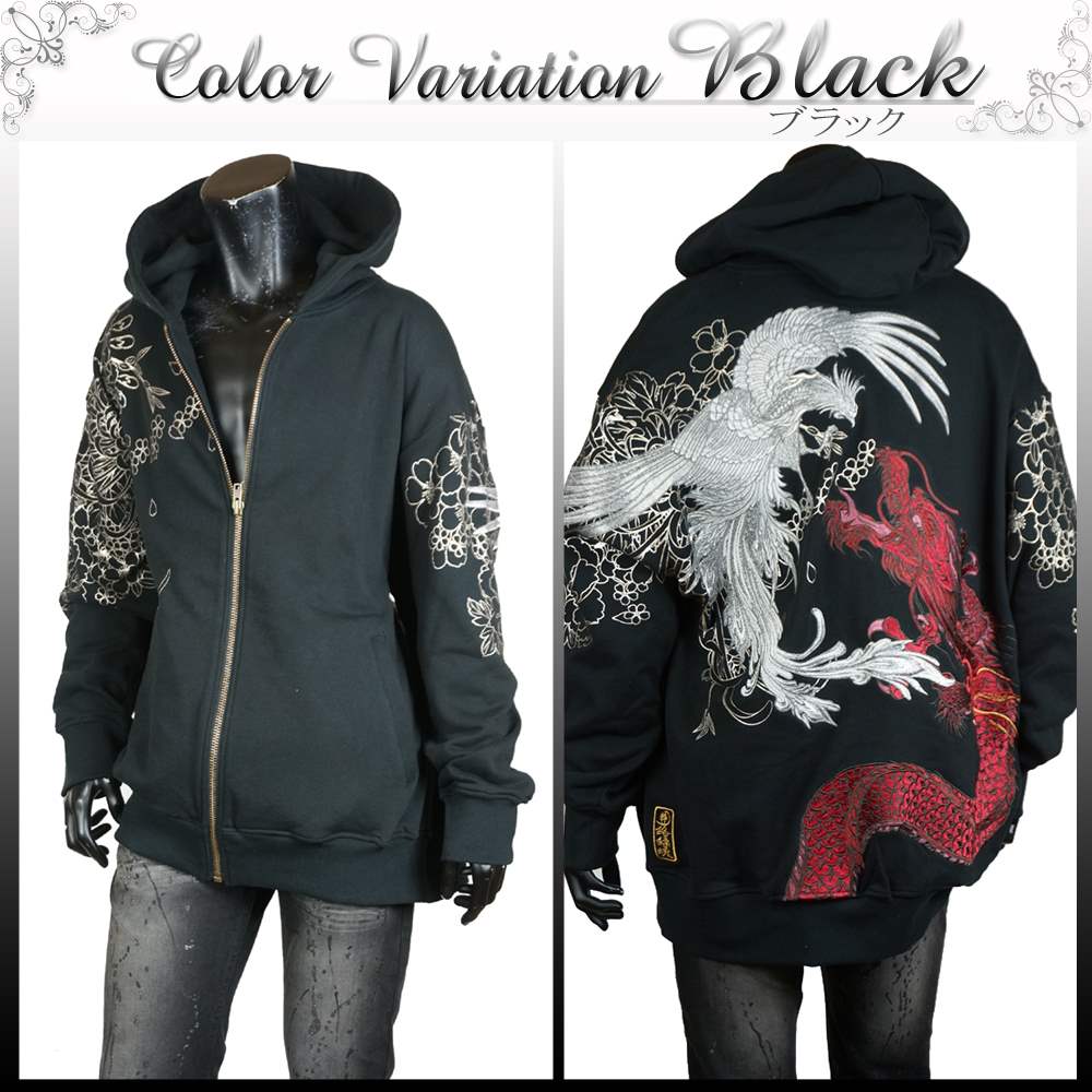 刺繍/裏毛/サイドポケット有 サガンスタイル 20180130新着龍&鳳凰刺繍フルジップパーカー。