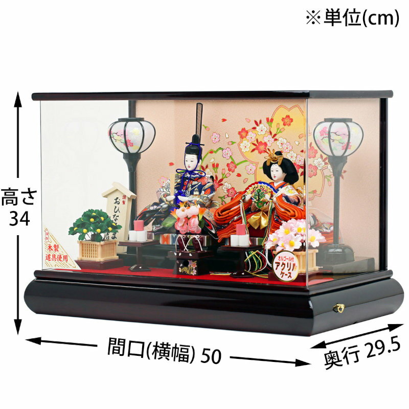 ケース飾り横幅50×奥行29.5×高さ34(cm)今すぐ購入する節句人形アドバイザーの、おすすめポイント!こちらのケース入り飾りは、限定数のみの、ご奉仕価格でお薦めです。